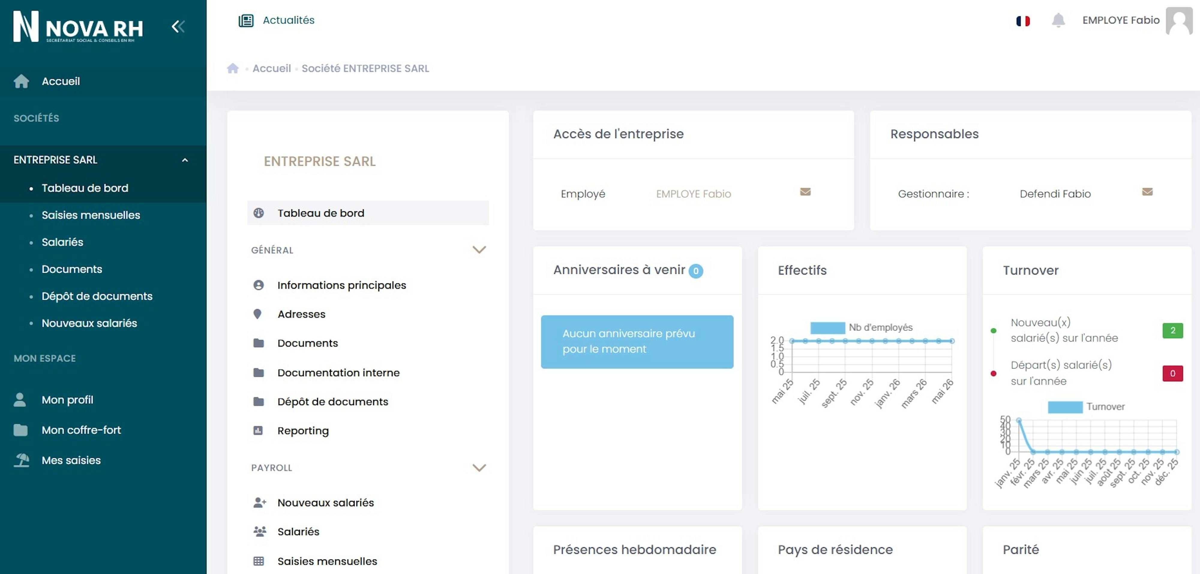Employeurs et responsables RH disposent d’un espace dédié, tandis que les salariés peuvent, si vous le souhaitez, bénéficier de leur propre accès individuel.